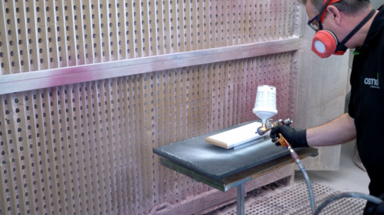 La température optimale d'application se situe entre 18°C min. et 25°C max. pour la température du matériau, ambiante et du support. Pistolet à peinture gravité : buse : 2,0-2,5 mm, pression de pulvérisation : 1,6-2,2 bar Airless : buse : 0,23-0,28 mm, pression du produit : 80-120 bar Airmix : buse : 0,23-0,28 mm, pression du produit : 80-100 bar, pression de pulvérisation : 1,2-1,8 bar. Séchage dans un chariot à claies ou séchage à air forcé, selon les conditions techniques. Après le séchage, effectuer un ponçage intermédiaire avec un grain P 240-400. Répéter l'opération si nécessaire. Appliquer ensuite la couche finale avec la Cire Applicable au Pistolet Osmo. Cette recommandation d'application est la recommandation d'application standard d'Osmo. Pour les petites surfaces, il est également possible d'utiliser d'autres méthodes d'application, comme par exemple le rouleau ou les pinceaux. Veuillez vous adresser à notre service technique d'application.