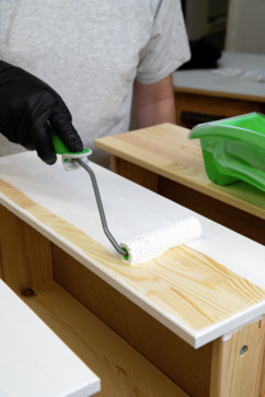 Sert de couche de fond et de couche intermédiaire pour le bois ou les matériaux dérivés du bois à l'intérieur, comme les panneaux MDF ou le contreplaqué.